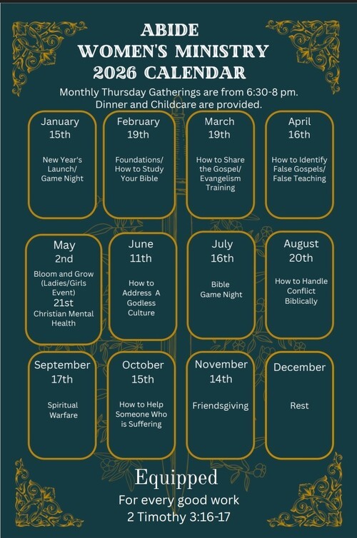 We seek to provide regular opportunities for women to gather for fellowship, study, and discipleship. Our desire is to offer environments where women of every age and stage can find community grounded in the Word of God.